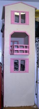 Here are some photos of the unsuspecting dollhouse, pre-refurbishing, still in storage in my parents' garage.