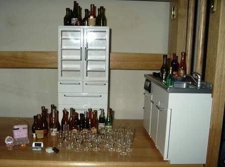Luckily, I'm a Re-ment collector from way back so I have most of the homey little furnishings already. Due to lack of resources, the house is going to have to be a mix of all the seasons. I'm not a gung-ho enough fan to duplicate any one season in exhaustive detail, I'm just going for overall feel. Here are some of the kitchen furnishings...I do have the marble for the kitchen table surface, it just needs to be cut.
